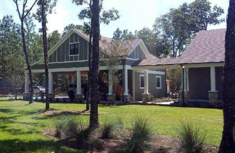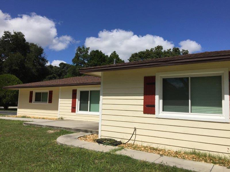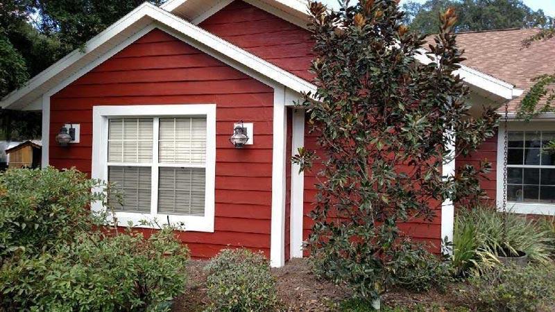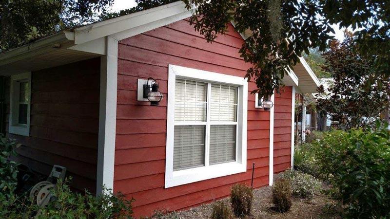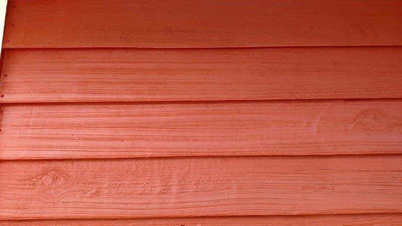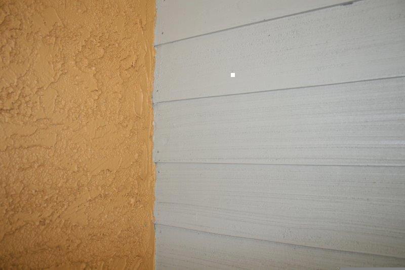 Simulated Lap Siding is actually built up with stucco on the exterior cement block wall by our stucco craftsmen. The simulated lab siding is extremely durable, and weather-tight because the stucco is put on thick. A simulated wood texture can then be added including indentations to simulate the nail holes. The end result is a rustic, wood-clad siding look, made of a durable, long lasting coating of stucco that can be painted any color you wish.